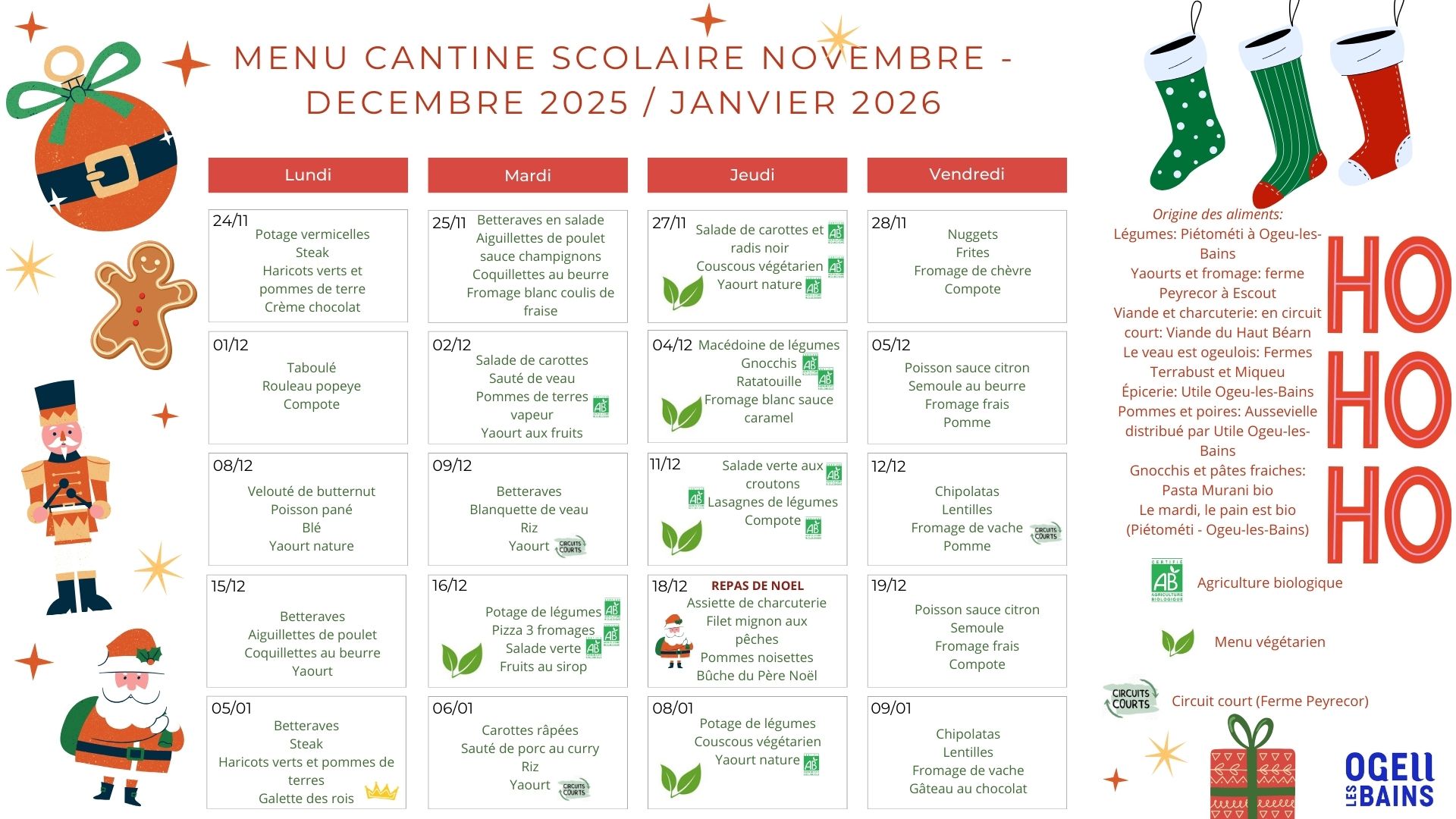 Les menus élaborés par la cuisinière respectent l’équilibre nutritionnel préconisé par le Programme National Nutrition Santé (PPNS).
